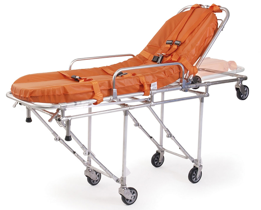 四個輪子直徑為200毫米,兩個固定輪帶有剎車,2個任意轉(zhuǎn)動方向輪。由軟性材料制成,在不平的路面上可以保持平穩(wěn)。擔(dān)架車表面是由加強熱塑材料制成,適于做心外按壓,易于清洗和消毒。頭板可抬高,由氣彈簧控制,可在0-80度間固定在任意位置。部分型號的腳板可抬高,特別適用于需要增加回心血量的休克病人等。擔(dān)架車頭側(cè)可放下,方便在狹窄的空間使用(部分型號除外)。有安全桿設(shè)計,防止非專業(yè)人士誤操作。垂直的支腳有塑料緩沖桿保護。任意轉(zhuǎn)動方向輪可以自我居中,保證上車時位置居中,而不用手工定位。