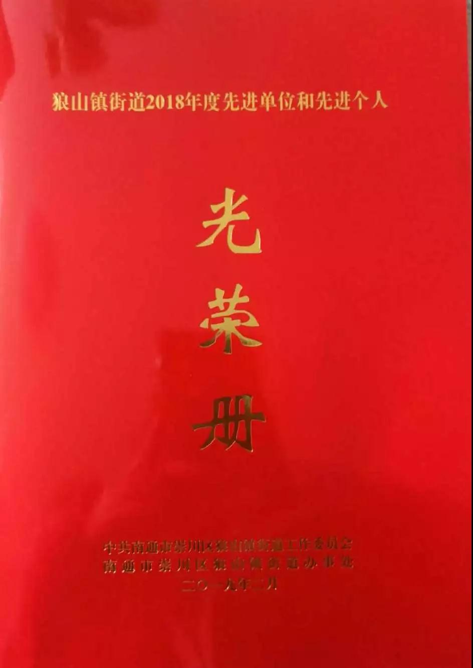 恭賀我司榮獲狼山鎮(zhèn)街道2018年度“結(jié)對共建先進單位”